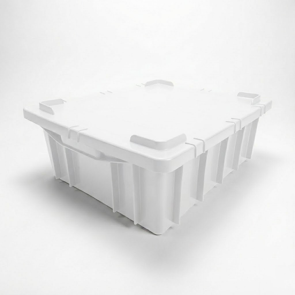 O design permite um empilhamento seguro, otimizando espaços em residências, comércios e indústrias. Além do mais, por ser compatível com tampas e caixas de outras marcas, essa caixa oferece um encaixe preciso, facilitando o armazenamento e melhorando a organização do ambiente.